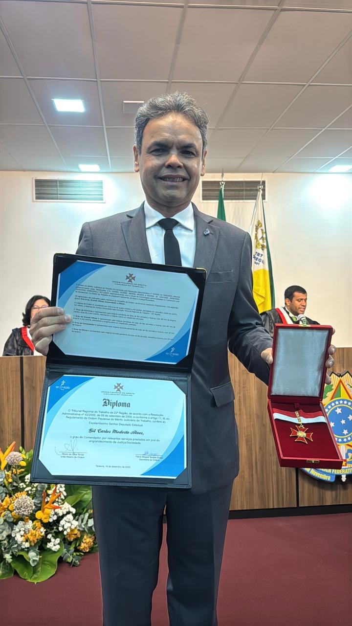 O deputado estadual Gil Carlos Modesto foi homenageado nesta semana no Tribunal Regional do Trabalho do Piauí (TRT-PI), em Teresina, em um momento marcado por reconhecimento institucional e valorização do compromisso público. A homenagem foi concedida pelo desembargador Manoel Edilson, como forma de deferência à atuação do parlamentar em defesa das...