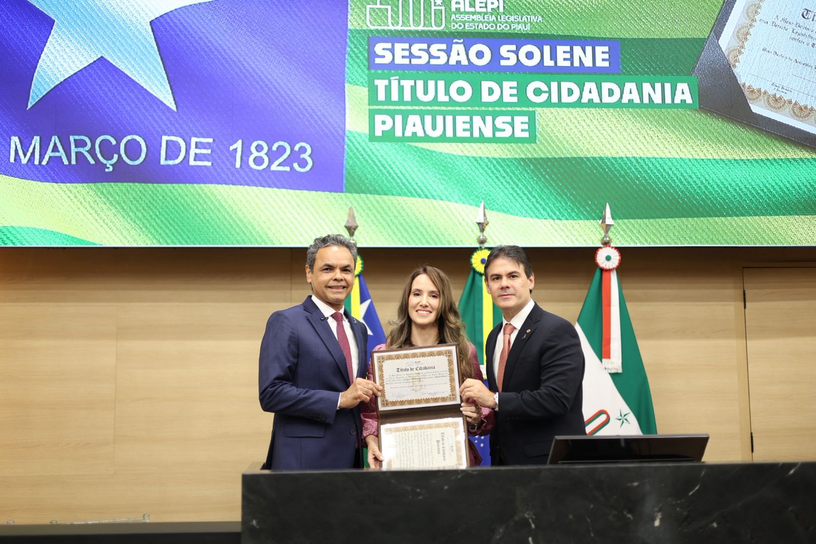 A Assembleia Legislativa do Piauí (Alepi) realizou, nesta segunda-feira (30), no Plenário Waldemar Macêdo, uma sessão solene para a entrega do título de cidadania piauiense à médica Daniele Amorim Aita. A concessão da honraria foi proposta pelo deputado Franzé Silva (PT).